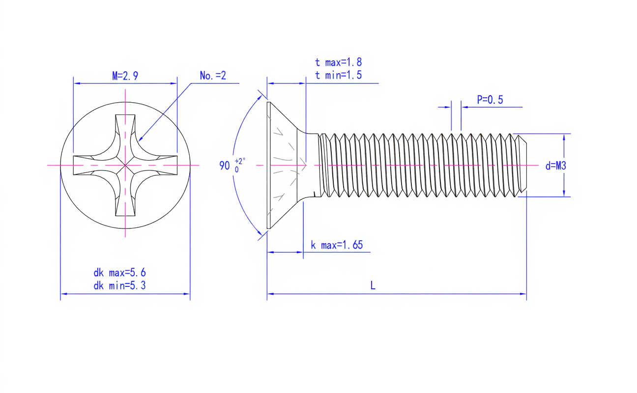 Тип головки: Потайна (конусоподібна з кутом приблизно 90°), що дозволяє приховати гвинт у матеріалі.