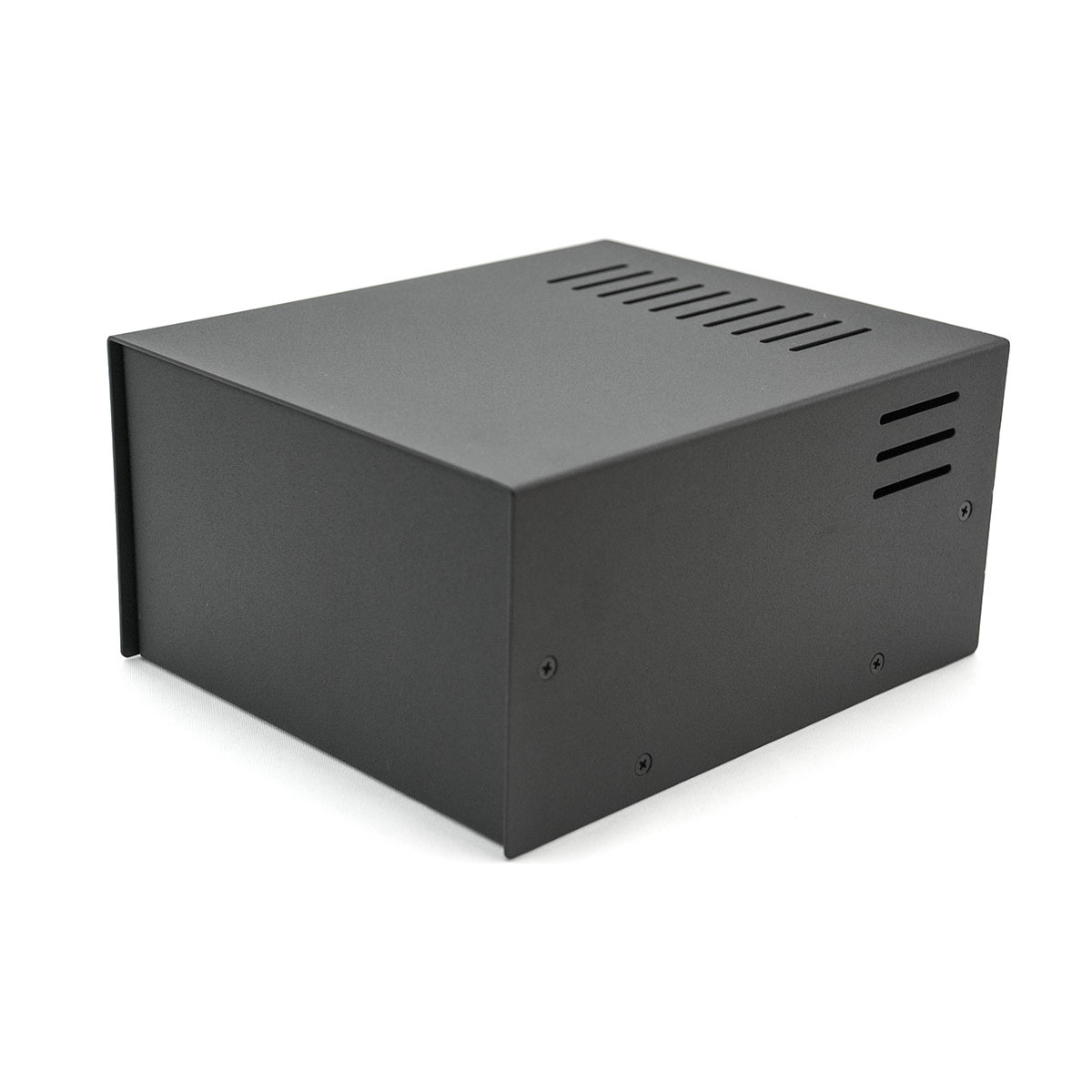 Корпус виконаний зі сталі. Металевий корпус для радіоапаратури пофарбований красивою чорною фарбою, стійкою до подряпин і на ній не залишаються відбитки від пальців.