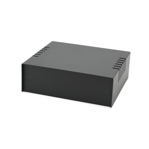 Корпус виконаний зі сталі. Металевий корпус для радіоапаратури пофарбований красивою чорною фарбою, стійкою до подряпин і на ній не залишаються відбитки від пальців.