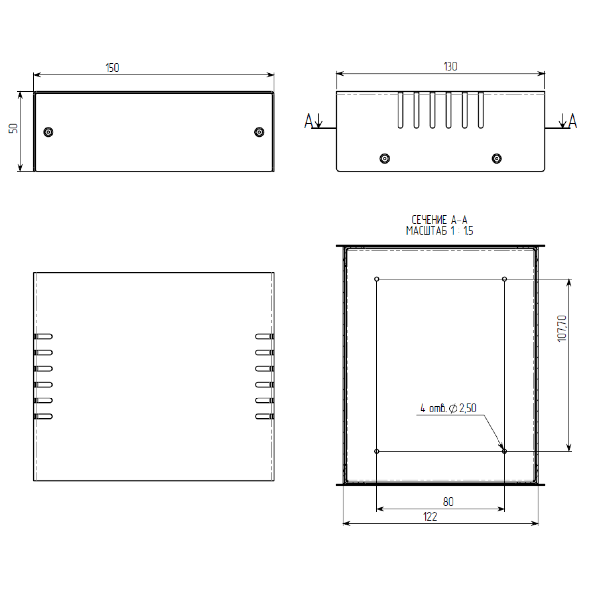 У дні корпусу передбачено 4 отв. під ніжку ф2,5 (в цих отв. можна нарізати різьбу М3 метчиком).