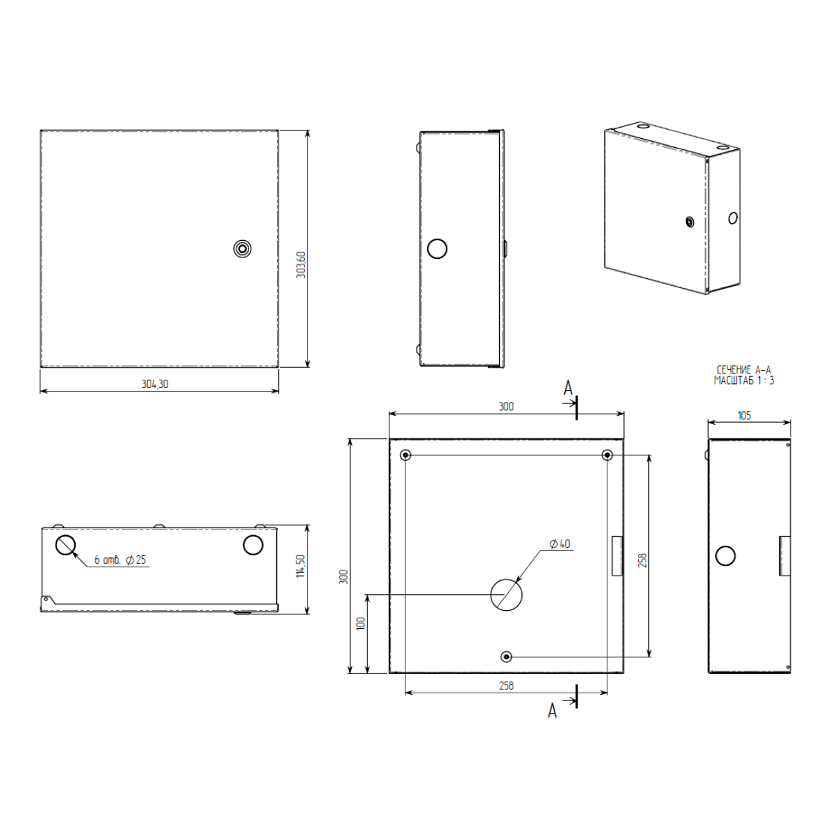 • один отвір Ф40 мм на задній стінці для введення кабелю