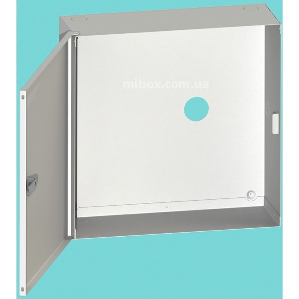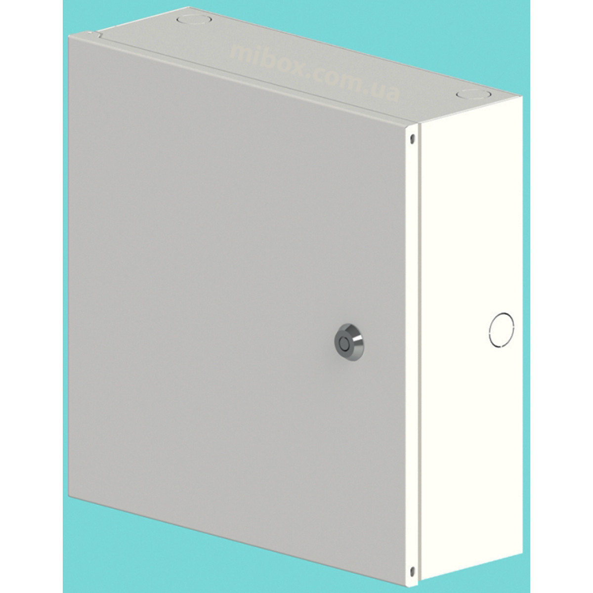 Бокс виготовлений зі сталі товщиною 0,8 мм, покритий полімерно-порошковою фарбою білого кольору (RAL9016). В монтажному боксі для радіоелектронного обладнання передбачено на задній і бічних стінках отвори для вводу кабелів і монтажу на стіну. Корпус закриватися на замок (замок з секретом). Дверцята в корпусі незнімна. Кут відкривання дверцят - 115 град.
