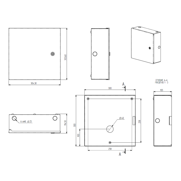 - один отвір Ф40 мм на задній стінці для введення кабелю