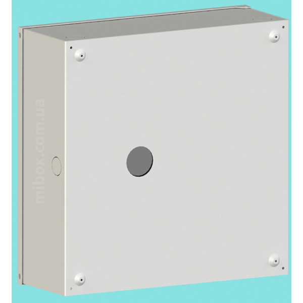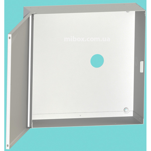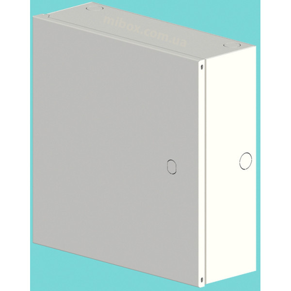 Бокс виготовлений зі сталі товщиною 0,8 мм, покритий полімерно-порошковою фарбою білого кольору (RAL9016). В монтажному боксі для радіоелектронного обладнання передбачено на задній і бічних стінках отвори для вводу кабелів і монтажу на стіну. Корпус закриватися на саморізи (саморізи в комплект не входять). Дверцята в корпусі незнімна. Кут відкривання дверцят - 115 град.