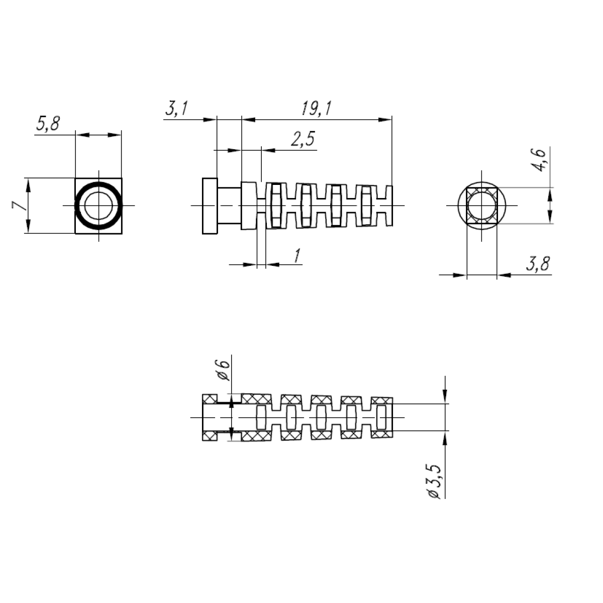 гибкий ввод для корпуса РЭА №1 (посад.отв.5х4, вн.R1мм), черный