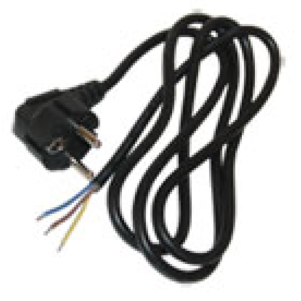 Шнур питания без разъема С4, 3х1.0 Cu, длина 1.5м (угловая вилка), чёрный