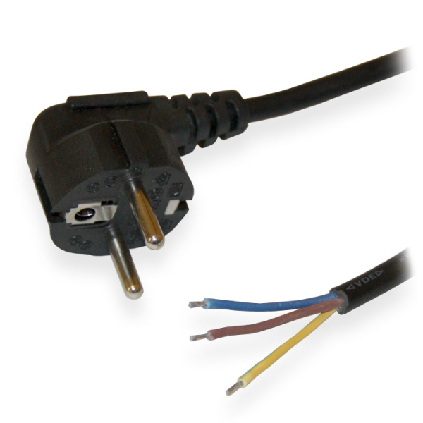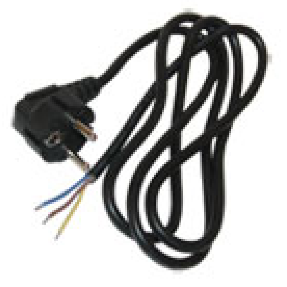 Шнур питания без разъема С4, 3х1.5 Cu, длина 1.5м (угловая вилка), чёрный