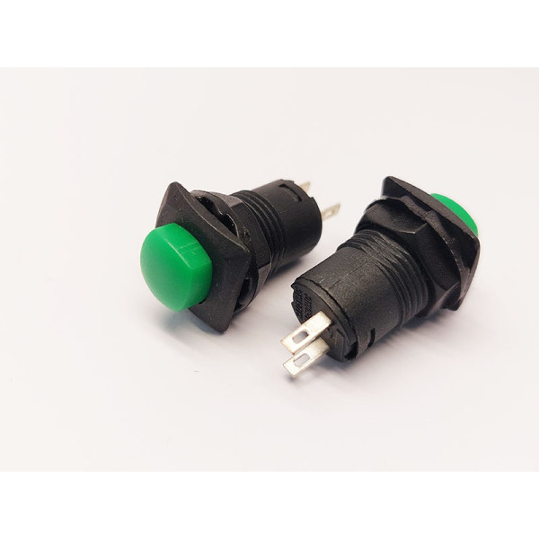 Кнопка DS-225 ЗЕЛЕНАЯ без фиксации, OFF-(ON), 1A/250VAC, 2pin