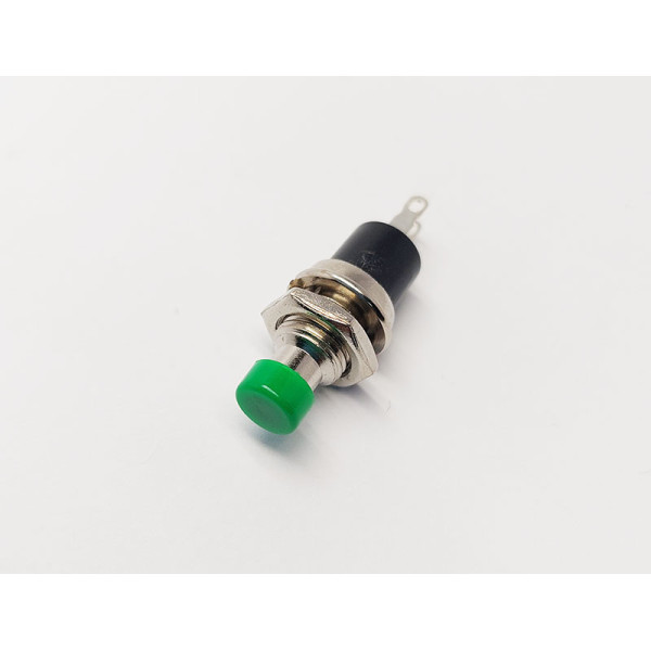 Кнопка PBS-105 ЗЕЛЕНАЯ без фиксации NO, OFF-(ON), 0.5A/250VAC, 2pin