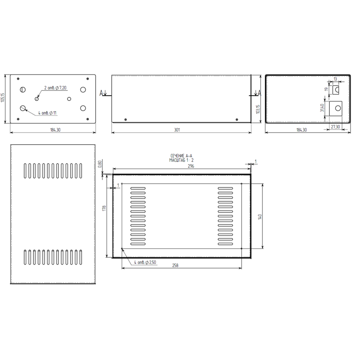 Корпус для фонокорректора Василича, модель MB-FK1ACU-W184H103L301, RAL9005(Black textured).