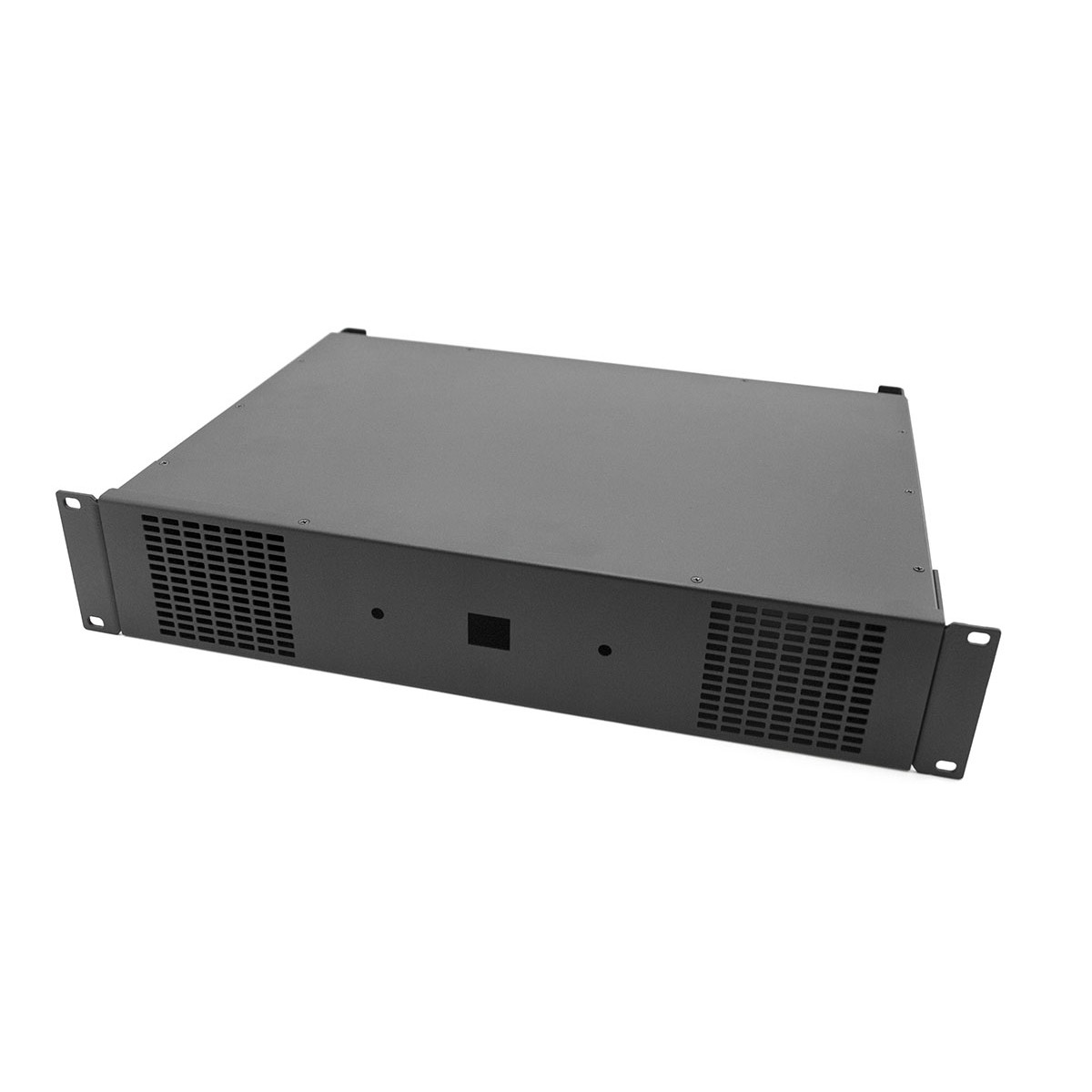 Корпус усилителя мощности звука (двухканальный) выполнен из тонколистовой качественной стали.
