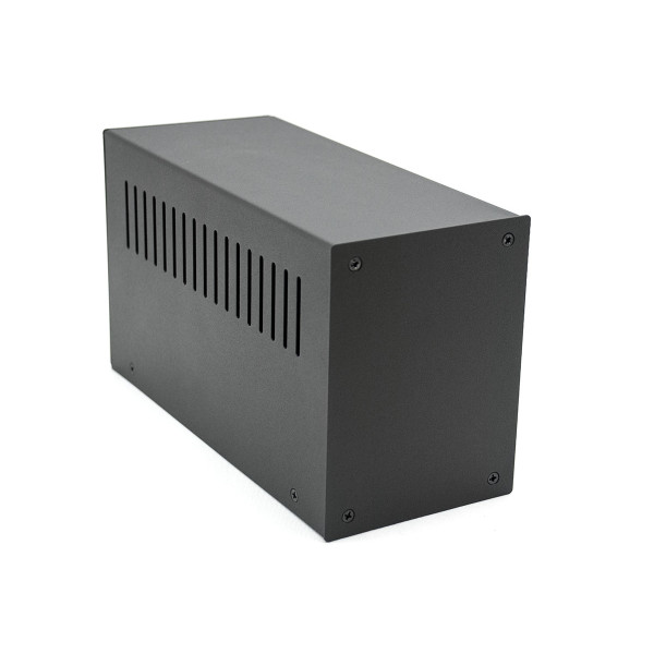 Корпус выполнен из стали. Металлический корпус для радиоаппаратуры окрашен красивой черной краской, устойчивой к царапинам и на ней не остаются отпечатки от пальцев.