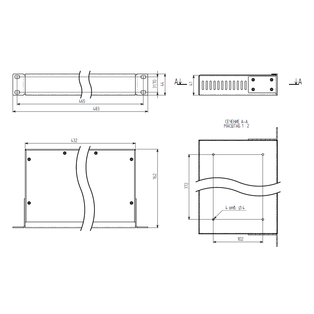 Конструкция металлического корпуса частично разборная. Съемные уши и верхняя крышка. Дно, передняя и задняя панель выполнены как одно целое.
