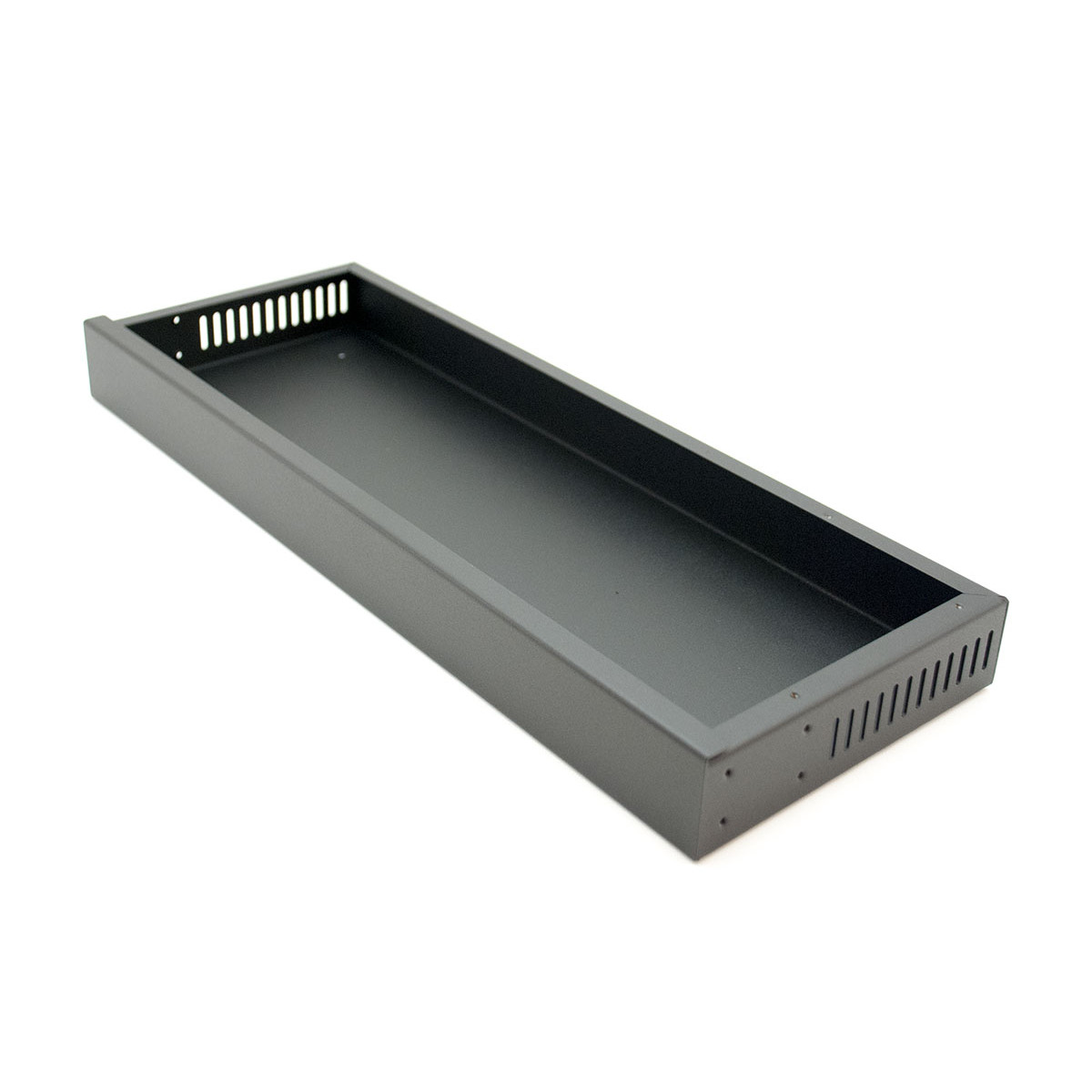 Корпус выполнен из стали. Металлический корпус для радиоаппаратуры окрашен черной краской, устойчивой к царапинам и на ней не остаются отпечатки от пальцев.