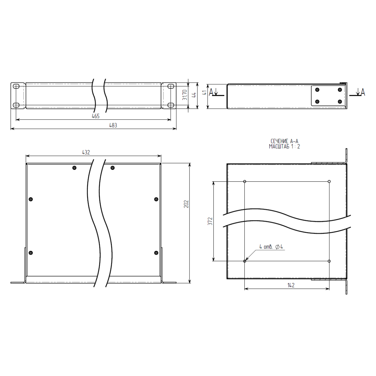 Конструкция металлического корпуса частично разборная. Съемные уши и верхняя крышка. Дно, передняя и задняя панель выполнены как одно целое.