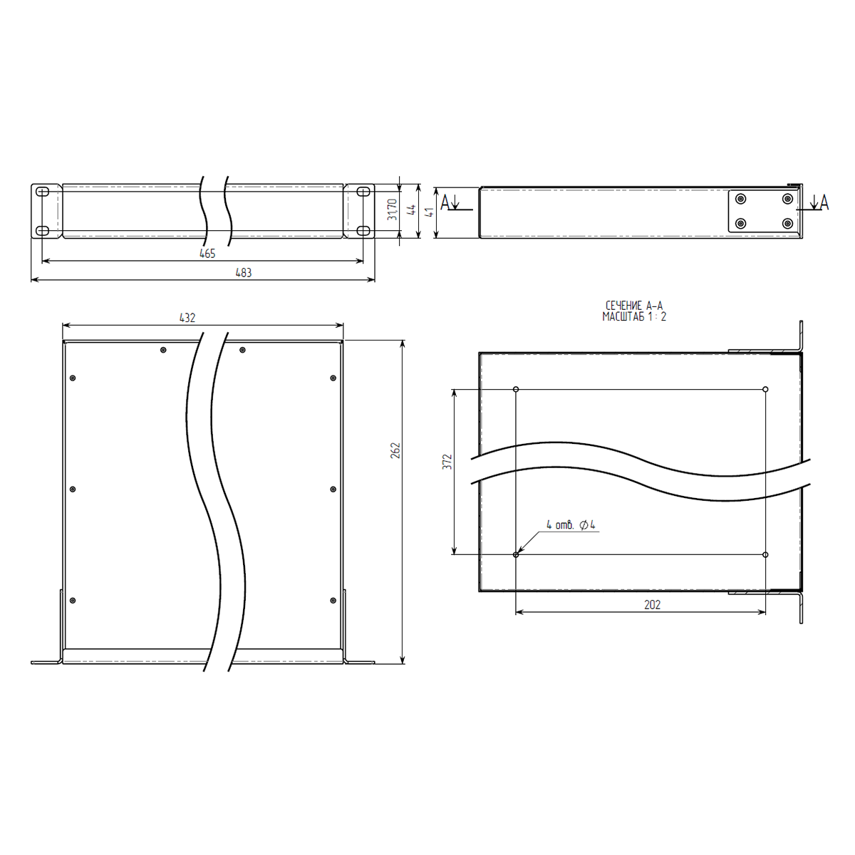 Конструкция металлического корпуса частично разборная. Съемные уши и верхняя крышка. Дно, передняя и задняя панель выполнены как одно целое.