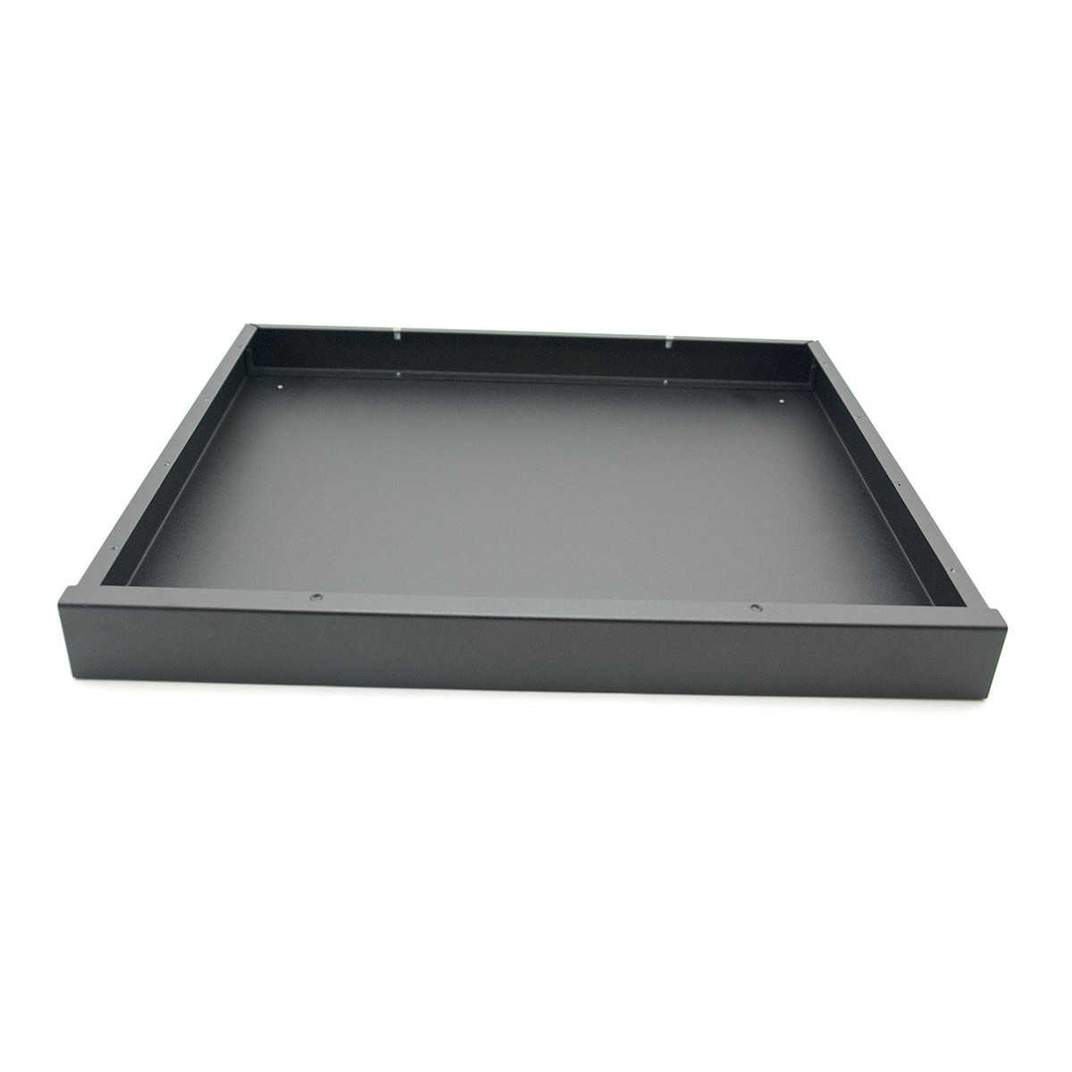 Корпус выполнен из стали. Металлический корпус для радиоаппаратуры окрашен черной краской, устойчивой к царапинам и на ней не остаются отпечатки от пальцев.