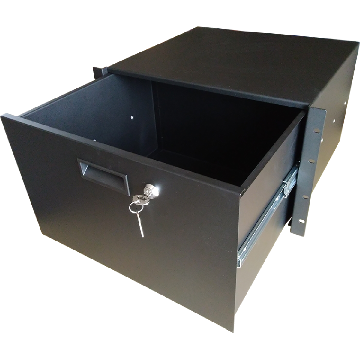 Удобный выдвижной ящик для документов, паспортов, оборудования, шнуров и прочих необходимых для обслуживания стоечного оборудования вещей. Подходит для всех типов серверных стоек глубиной от 400 до 750 мм. Ящики имеют эргономичную конструкцию и очень удобны в эксплуатации. Все выдвижные ящики укомплектованы замком.