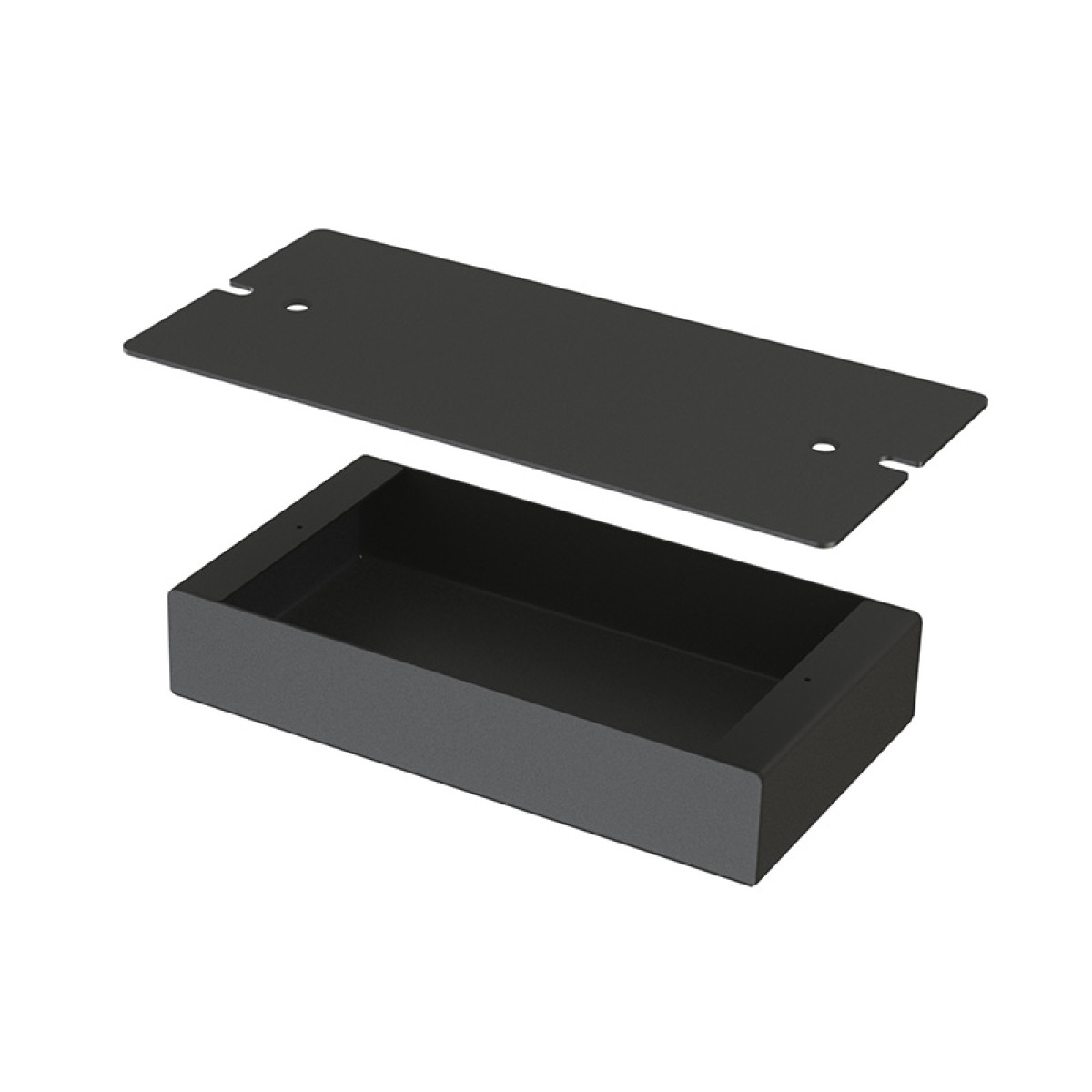 Корпус изготовлен из тонколистовой стали. Благодаря высокой прочности стали, корпус надежно защитит внутренние элементы прибора или устройства в сравнении с аналогичным корпусом из пластика. Металлический корпус с креплением на стену покрашен высокопрочной декоративной краской черного цвета RAL9005(Black textured), текстура краски - муар. Данное покрытие устойчиво к царапинам и сколам. Конструкция корпуса частично-разборная. Наличие пазов на нижней части корпуса позволяет его прикрепить к любой поверхности.