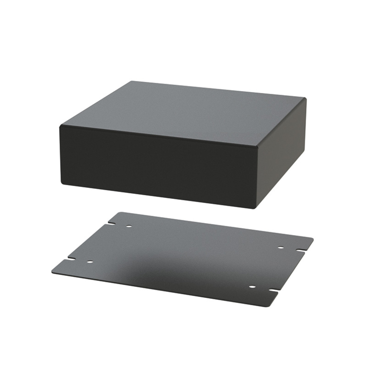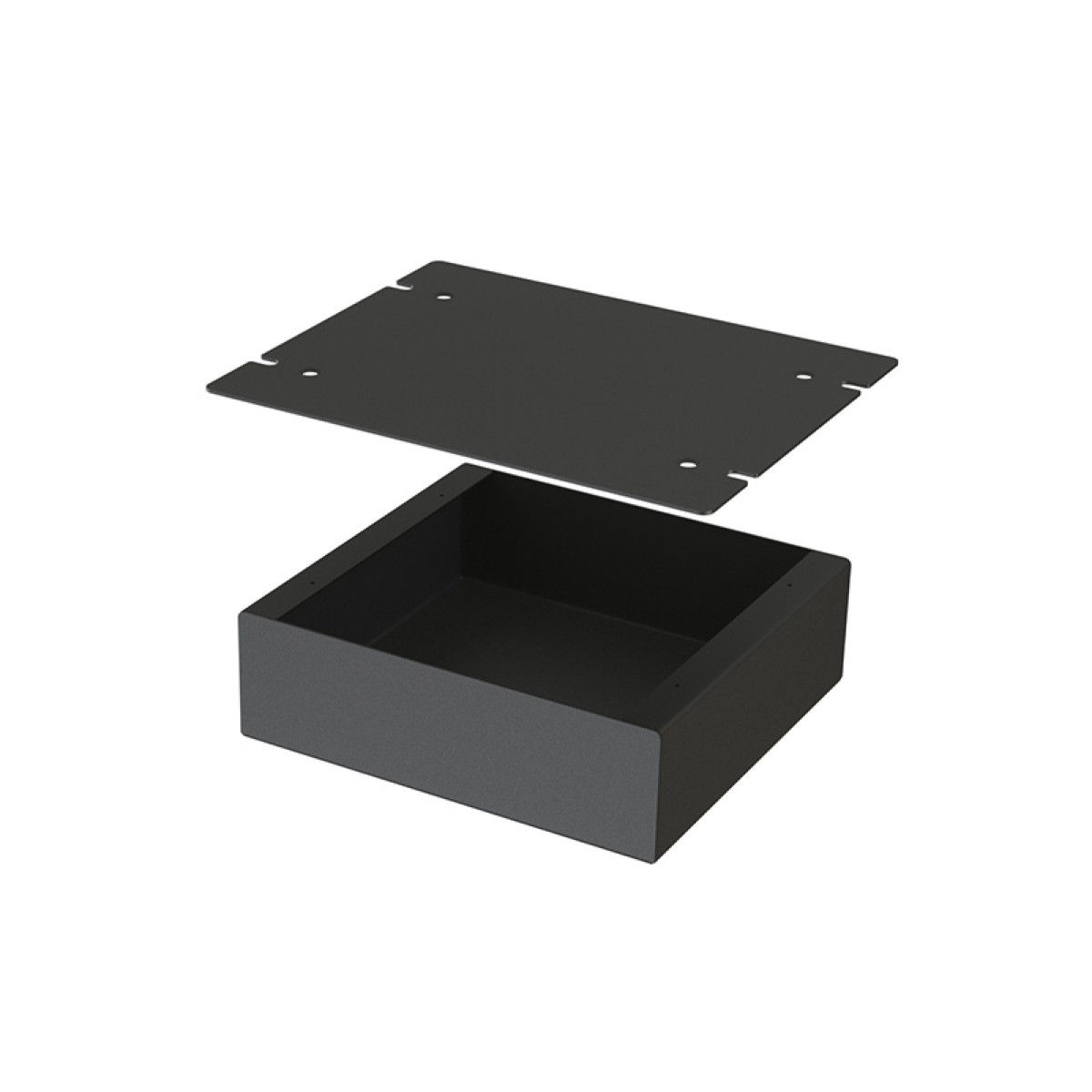 Корпус изготовлен из тонколистовой стали. Благодаря высокой прочности стали, корпус надежно защитит внутренние элементы прибора или устройства в сравнении с аналогичным корпусом из пластика. Металлический корпус с креплением на стену покрашен высокопрочной декоративной краской черного цвета RAL9005(Black textured), текстура краски - муар. Данное покрытие устойчиво к царапинам и сколам. Конструкция корпуса частично-разборная. Наличие пазов на нижней части корпуса позволяет его прикрепить к любой поверхности.