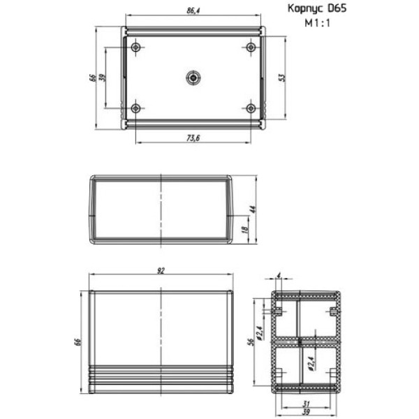 Корпус пластиковий D65 (В44хШ92хГ66)