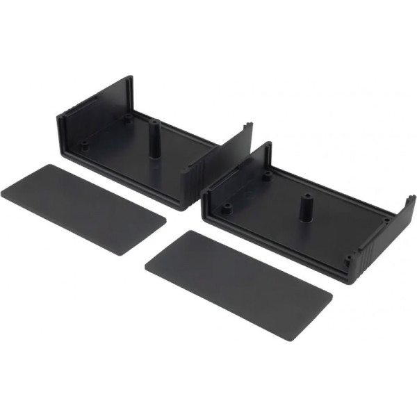 Корпус для електроніки. Корпус складається із двох однакових половинок. У корпусі передбачені кріпильні стійки та пази. Частини корпусу можна склеїти (для нерозбірних пристроїв) або скрутити тонкими довгими гвинами або шурупами, але для такого з'єднання потрібна невелика механічна доробка - потрібно просвердлити в одній з частин отвори.