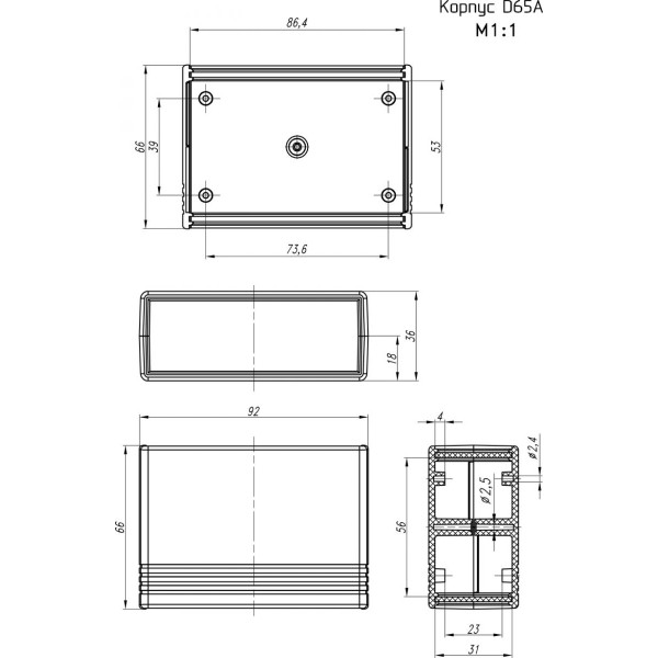 Корпус пластиковий D65A (В36хШ92хГ66)