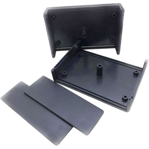 Корпус для електроніки. Корпус складається із двох однакових половинок. У корпусі передбачені кріпильні стійки та пази. Частини корпусу можна склеїти (для нерозбірних пристроїв) або скрутити тонкими довгими гвинами або шурупами, але для такого з'єднання потрібна невелика механічна доробка - потрібно просвердлити в одній з частин отвори.