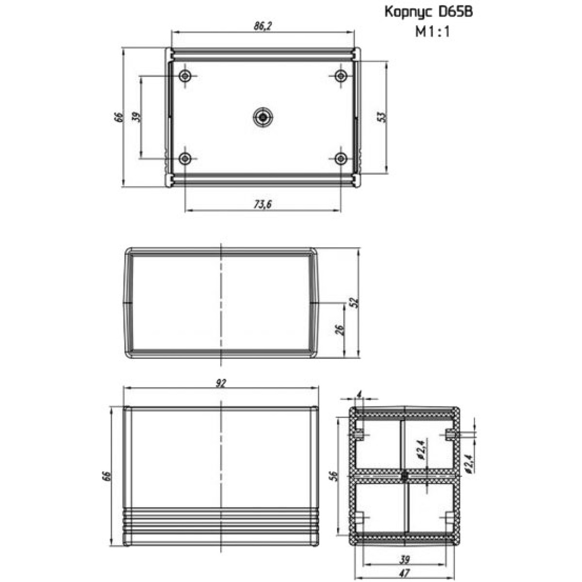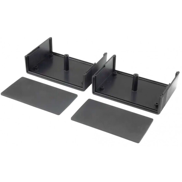 Корпус для електроніки. Корпус складається із двох однакових половинок. У корпусі передбачені кріпильні стійки та пази. Частини корпусу можна склеїти (для нерозбірних пристроїв) або скрутити тонкими довгими гвинами або шурупами, але для такого з'єднання потрібна невелика механічна доробка - потрібно просвердлити в одній з частин отвори.