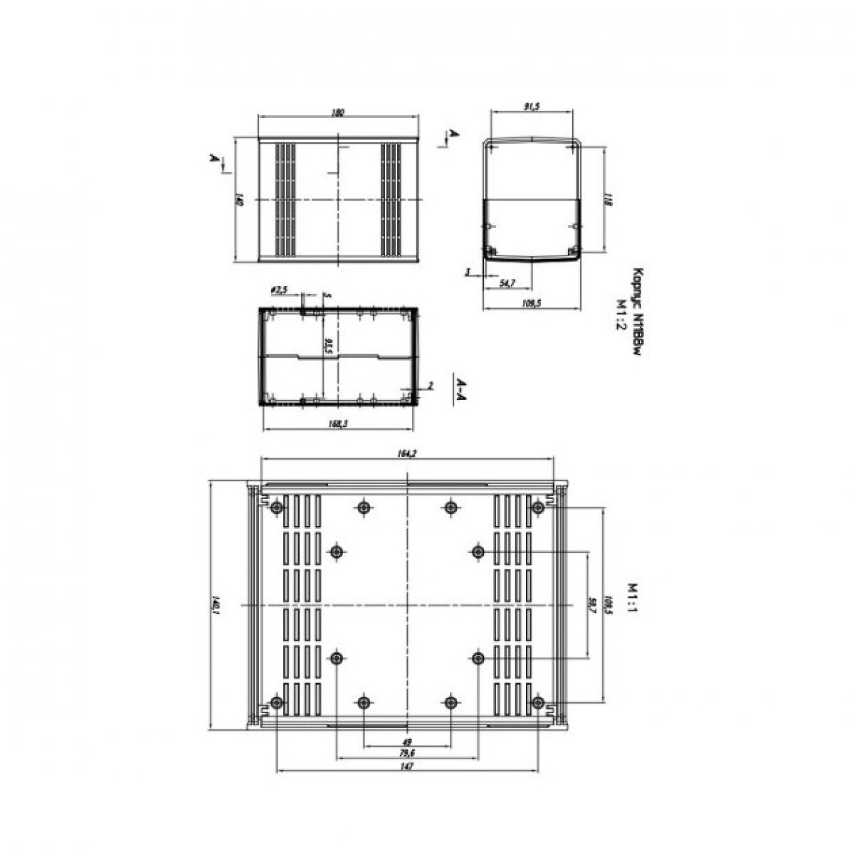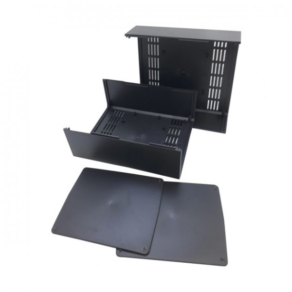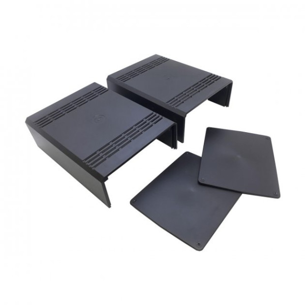 Корпус для електроніки. Корпус складається із двох однакових половинок. У корпусі передбачені кріпильні стійки та пази. Частини корпусу можна склеїти (для нерозбірних пристроїв) або скрутити тонкими довгими гвинами або шурупами, але для такого з'єднання потрібна невелика механічна доробка - потрібно просвердлити в одній з частин отвори. Також в корпусі є отвори, що охолоджують, для природного охолодження електроніки.