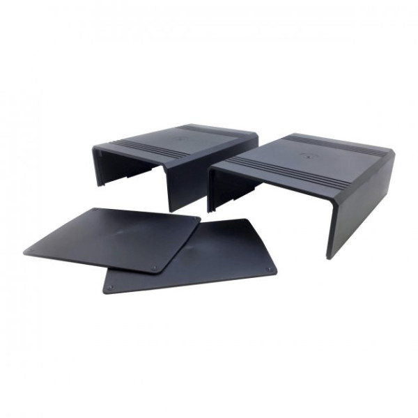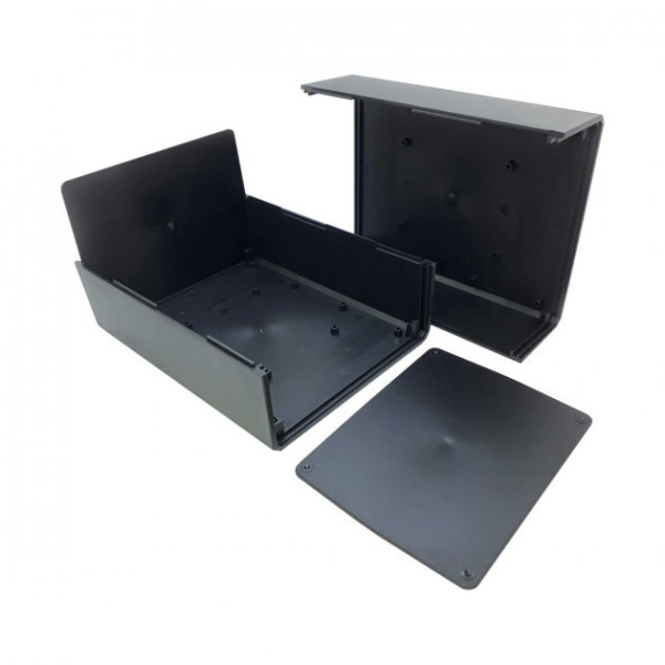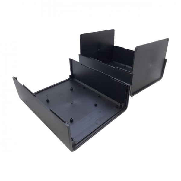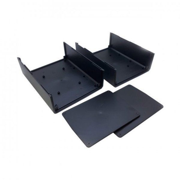 Корпус для електроніки. Корпус складається із двох однакових половинок. У корпусі передбачені кріпильні стійки та пази. Частини корпусу можна склеїти (для нерозбірних пристроїв) або скрутити тонкими довгими гвинами або шурупами, але для такого з'єднання потрібна невелика механічна доробка - потрібно просвердлити в одній з частин отвори.