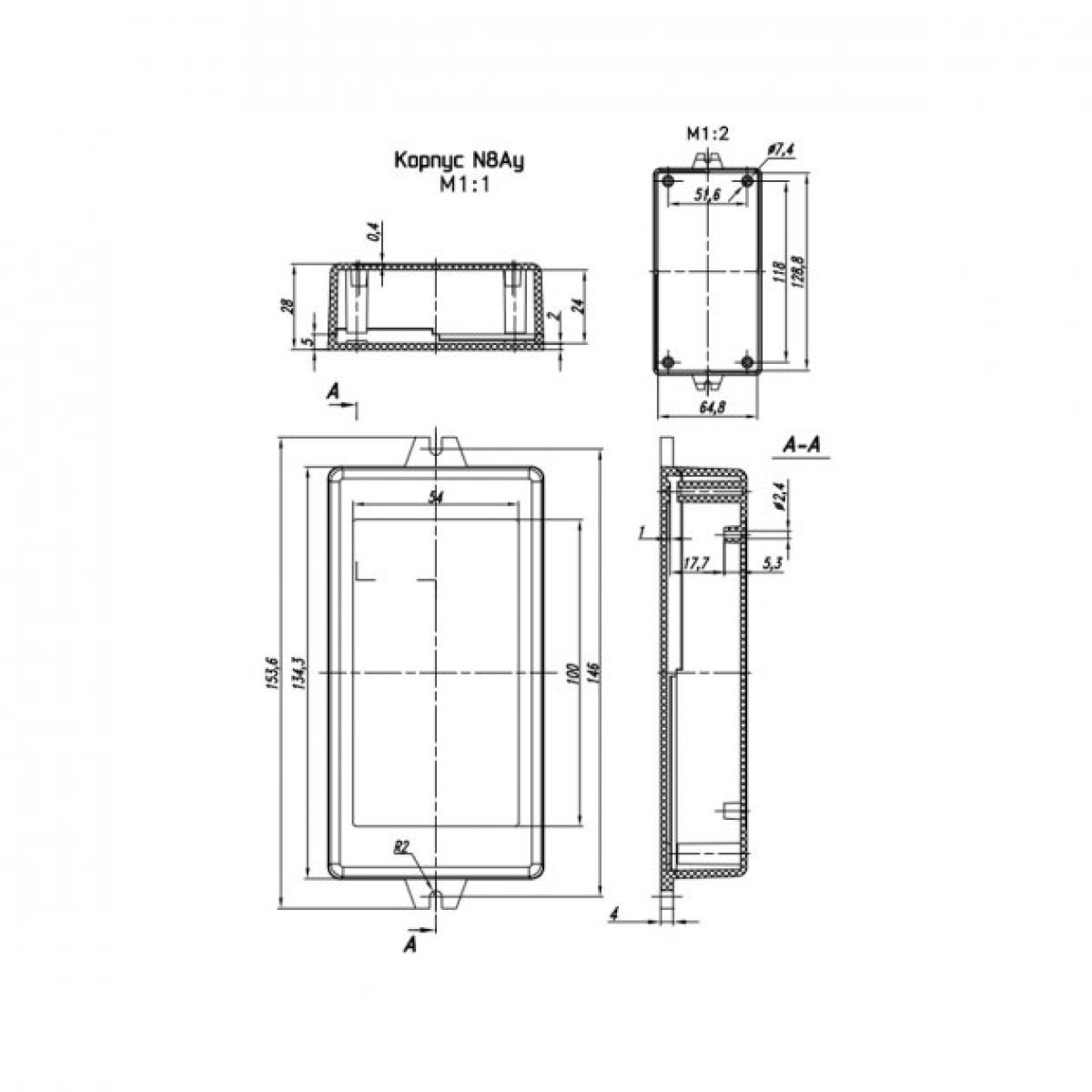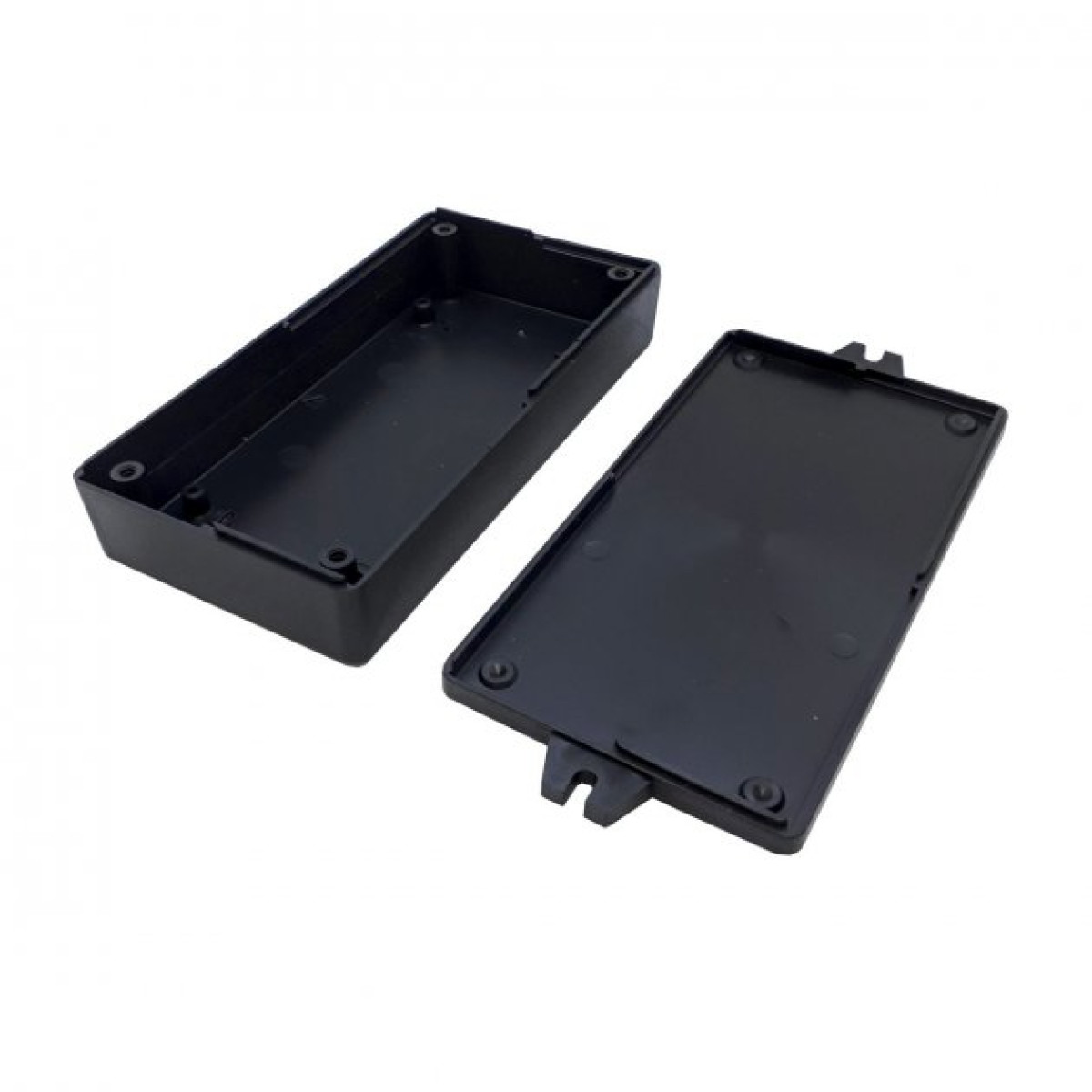 Корпус для електроніки. Корпус складається із двох однакових половинок. Кришка йде з кріпленнями для монтажу. У корпусі передбачені кріпильні стійки та пази. Частини корпусу можна склеїти (для нерозбірних пристроїв) або скрутити тонкими довгими гвинами або шурупами, але для такого з'єднання потрібна невелика механічна доробка - потрібно просвердлити в одній з частин отвори.