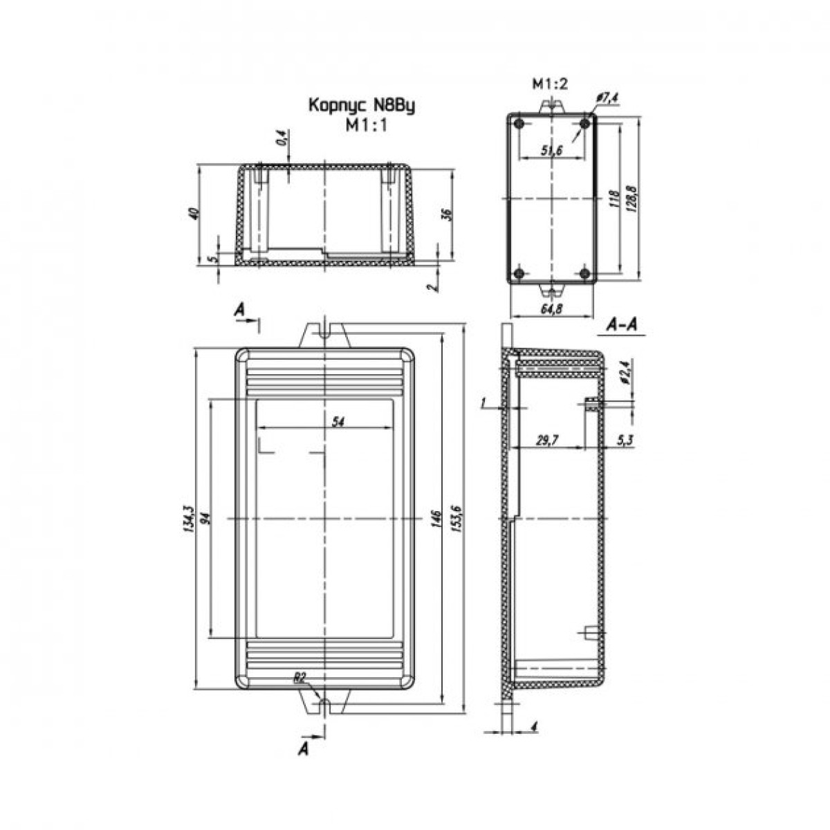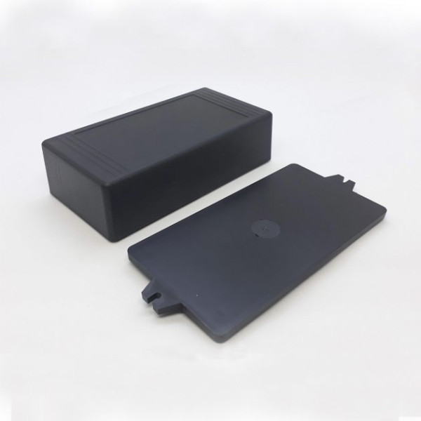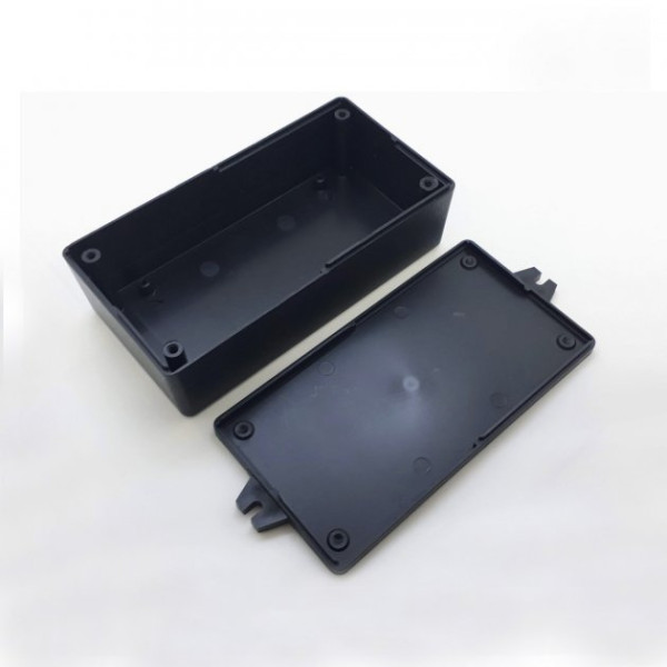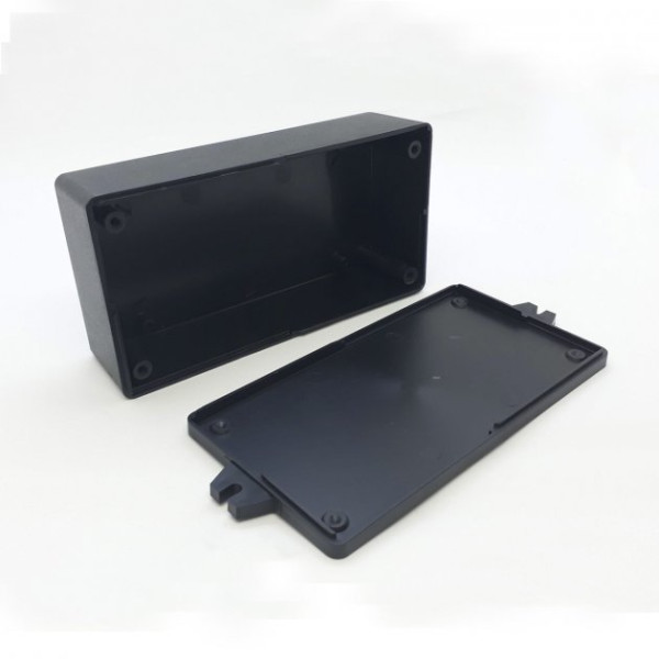 Корпус для електроніки. Корпус складається із двох однакових половинок. Кришка йде з кріпленнями для монтажу. У корпусі передбачені кріпильні стійки та пази. Частини корпусу можна склеїти (для нерозбірних пристроїв) або скрутити тонкими довгими гвинами або шурупами, але для такого з'єднання потрібна невелика механічна доробка - потрібно просвердлити в одній з частин отвори.