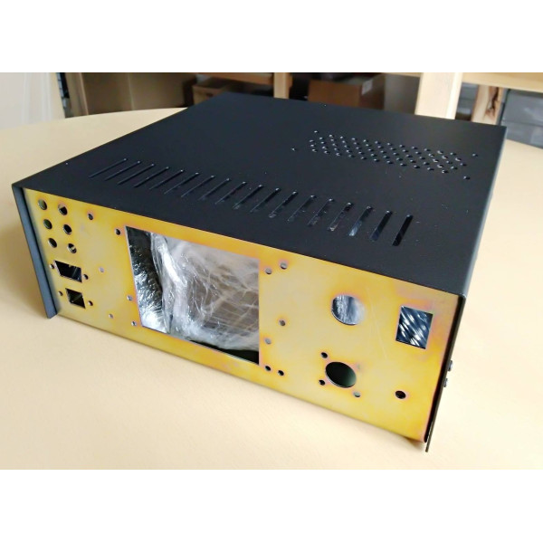 Новый корпус для трансивера "Маламут", модель "Malamute v.2019"ЖКИ 3,2 дюйма. Корпус анодированный или оцинкован и окрашен порошковой краской.Добавлены перегородки, которые анодированы или оцинкованы (перегородки включены в стоимость, по желанию клиента их можно не делать (стоимость корпуса на 100грн станет меньше)).Внутри предусмотрено место для плат от UR4QBP.Основная плата 100*100 мм, ФНЧ 50*94 мм, и ШПУ 50*94 мм.Фальш-панель теперь крепится на 4-х стойках высотой 5 мм.