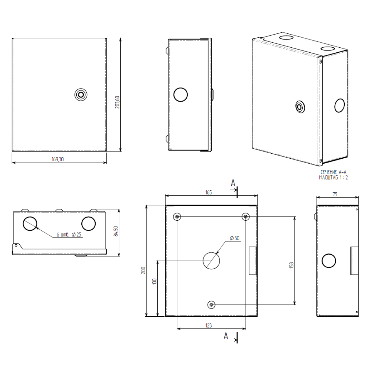 - отверстие Ф30 мм на задней стенке для ввода кабеля