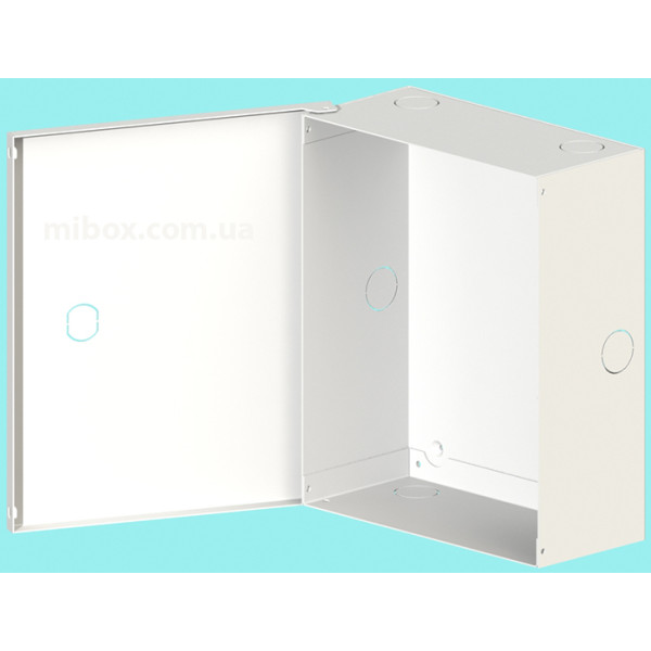 Бокс изготовлен из стали толщиной 0,8 мм, покрыт полимерно-порошковой краской белого цвета (RAL9016). В монтажном боксе для радиоэлектронного оборудования предусмотрено на задней и боковых стенках отверстия для ввода кабелей и монтажа на стену. Корпус закрываться на замок (замок с секретом). Дверца в корпусе несъемная. Угол открывания дверцы - 115 град.