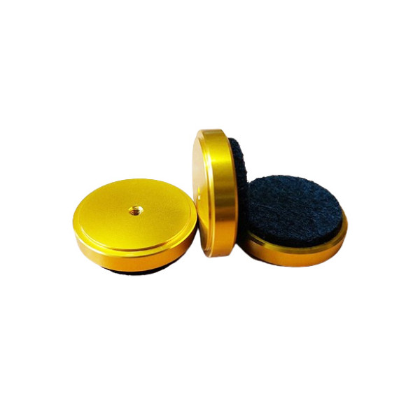 Наружный диаметр 40мм, высота 10 мм. Для снижения вибрации и защиты поверхности применяется черная войлочная накладка.