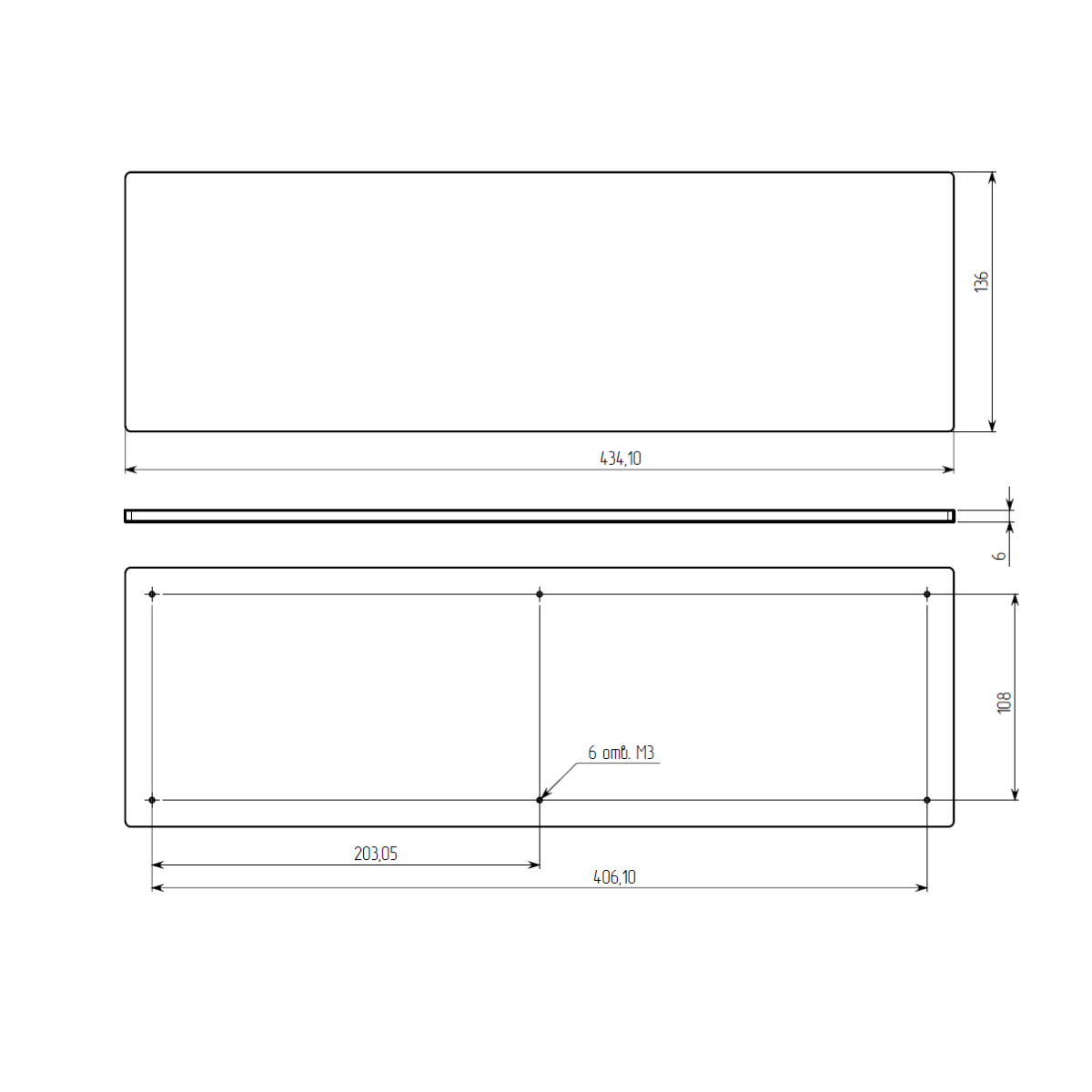 На задней части панели выполнены глухие отверстия с резьбой М3 для скрытого монтажа, с помощью которых можно прикрепить ее к прибору.