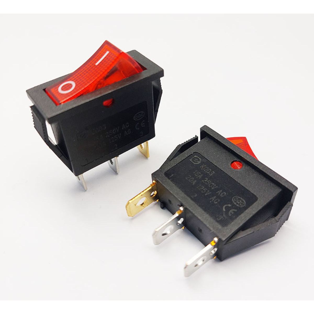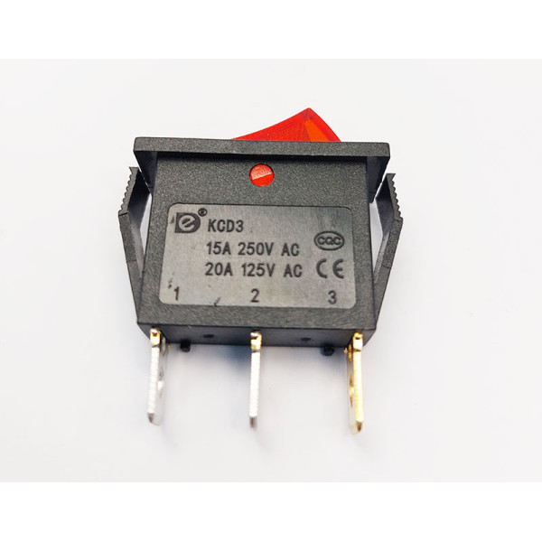 Переключатель клавишный KСD3-101N, с подсветкой, 1 группа, ON-OFF, 3 pin, 15A 250VAC, красный