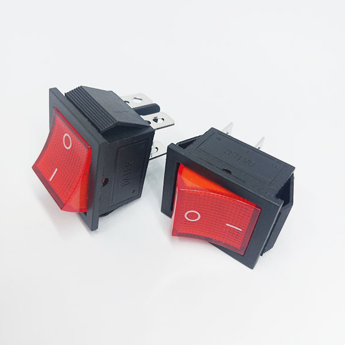 Перемикач клавішний IRS-201-1C, з підсвіткою, 2 групи, ON-OFF, 4 pin, 15A 250VAC, червоний