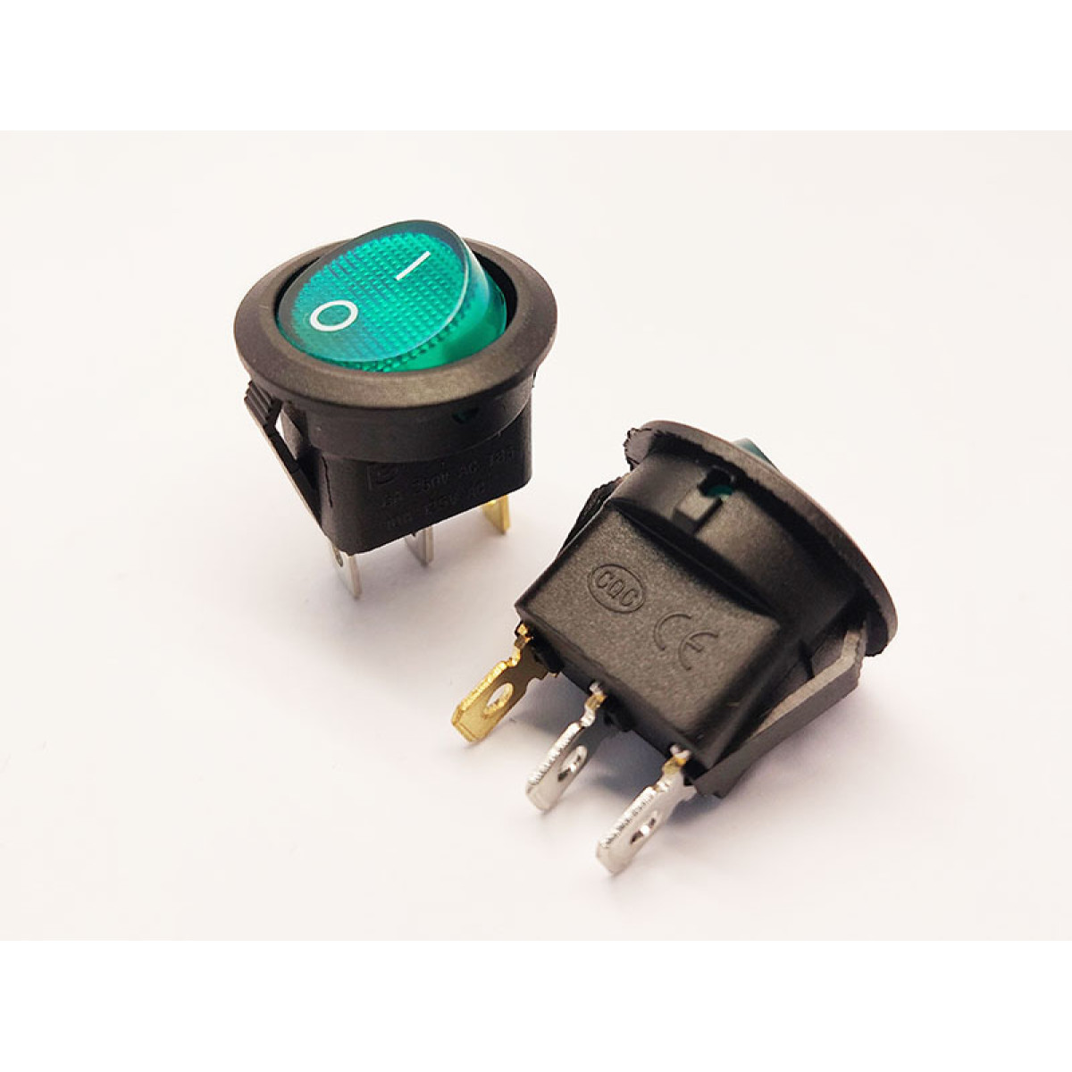 Переключатель клавишный KCD1-101N-8, с подсветкой, 1 группа, ON-OFF, 3 pin, 6A 250VAC/10A 125VAC, зеленый