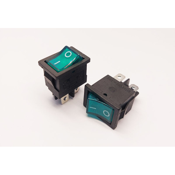 Переключатель клавишный KCD1-201N-4, с подсветкой, 2 группы, ON-OFF, 4 pin, 6A 250VAC/10A 125VAC, зеленый