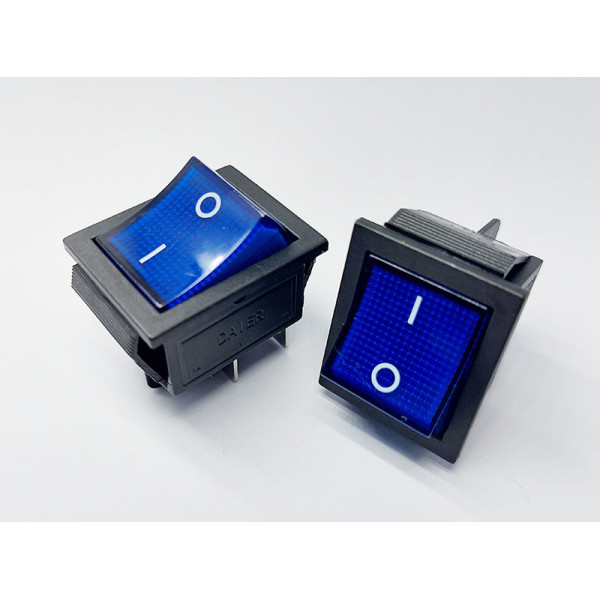 Переключатель клавишный KCD2-201N, с подсветкой, 2 группы, ON-OFF, 4 pin, 16A 250VAC, синий