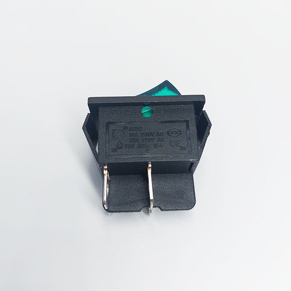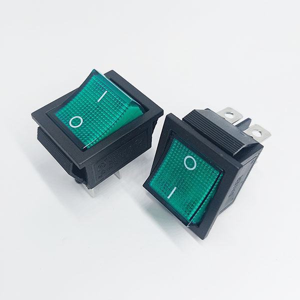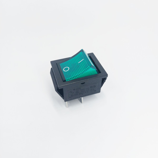 Перемикач клавішний KCD2-201N, з підсвіткою, 2 групи, ON-OFF, 4 pin, 16A 250VAC, зелений