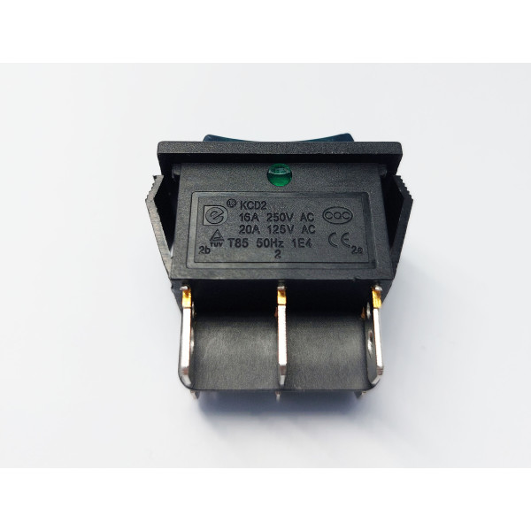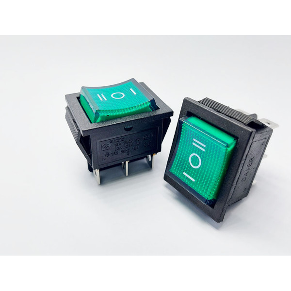 Переключатель клавишный KCD2-203N, с подсветкой, 2 группы, ON-OFF-ON, 6 pin, 16A 250VAC, зеленый