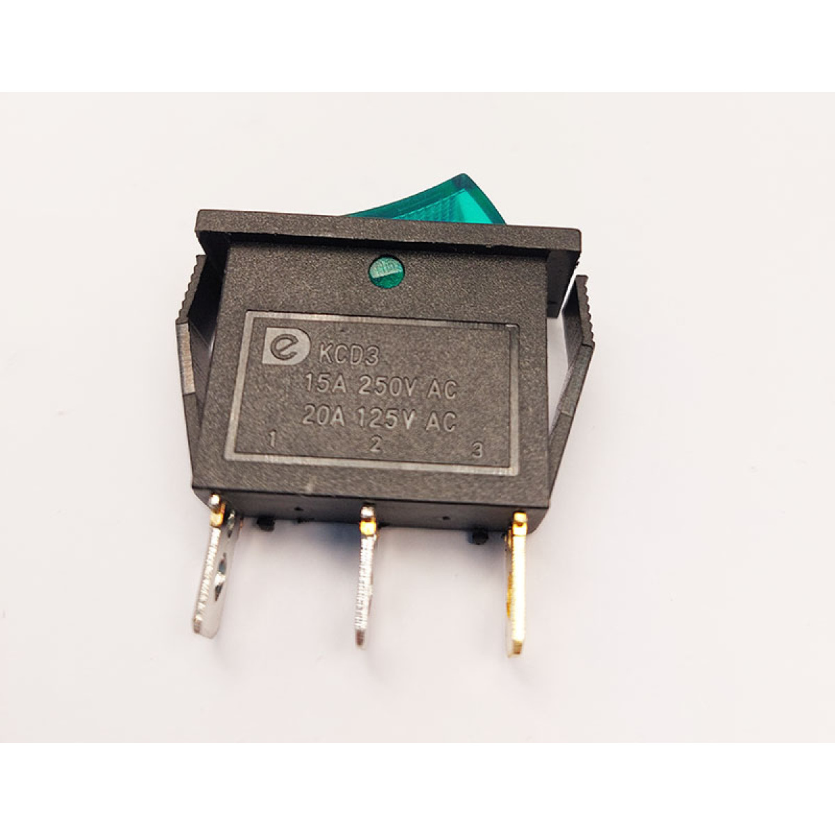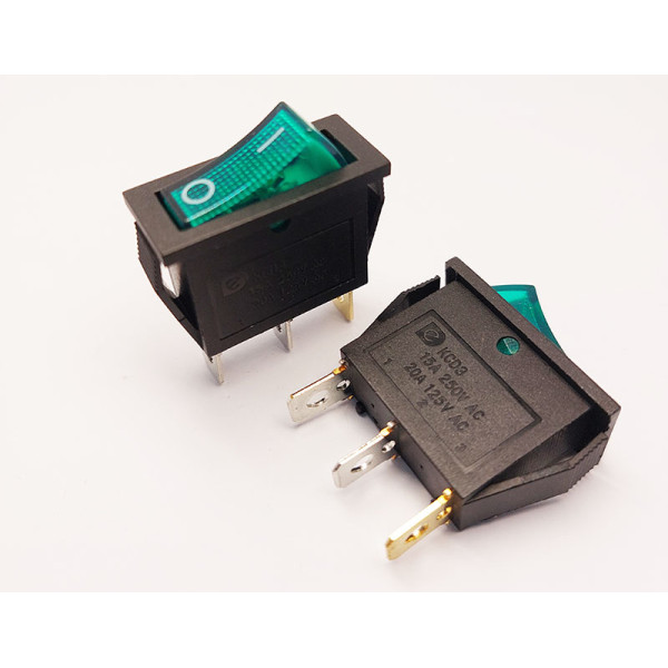 Переключатель клавишный KСD3-101N, с подсветкой, 1 группа, ON-OFF, 3 pin, 15A 250VAC, зеленый