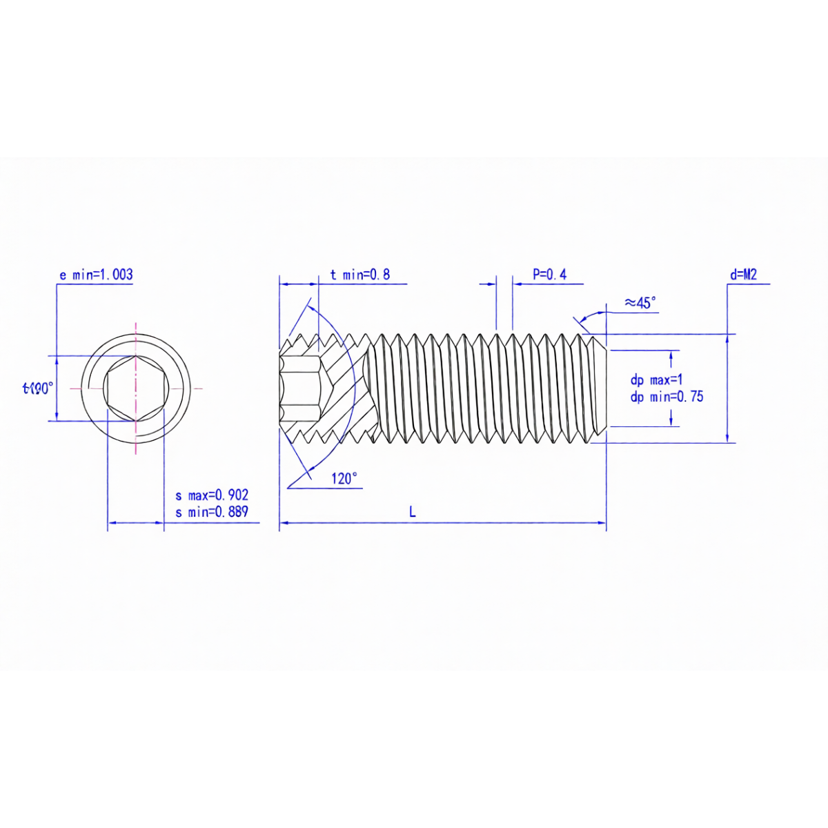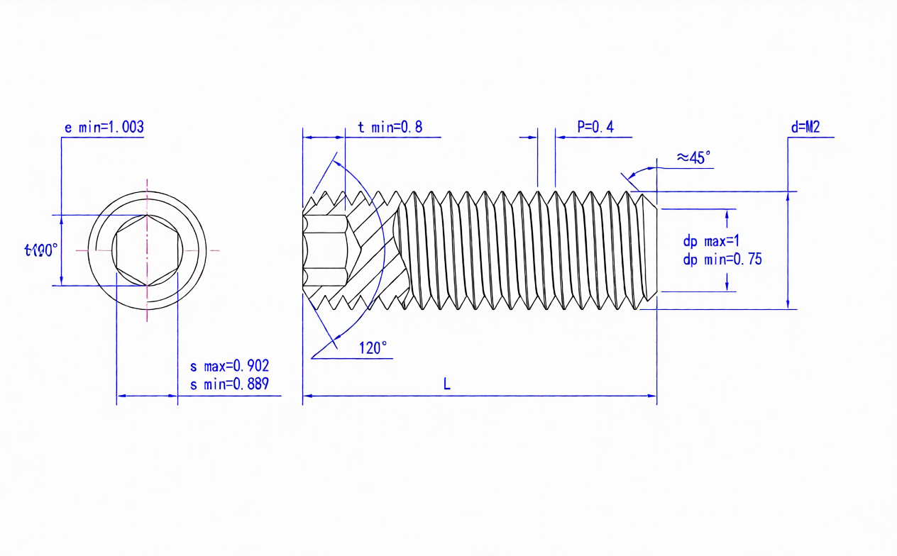 Винт установочный SJH M2х2 (DIN 913) с внутренним шестигранником и плоским концом, черный