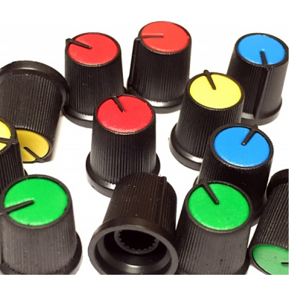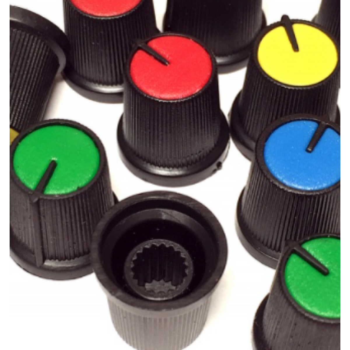 Ручка для змінного резистора R-02 зелена (D=15мм H=15мм), з покажчиком